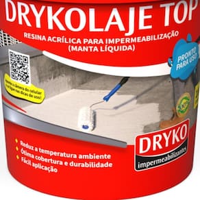 Produto: Manta líquida impermeabilizante para lajes 4kg - DRYKOLAJE TOP Marca: Dryko Descrição: A Manta líquida impermeabilizante para lajes 4kg - DRYKOLAJE TOP da Dryko é ideal para ser aplicada em lajes de cobertura sem trânsito de pessoas, pinturas refletivas em telhas de fibrocimento, proteção uv sobre o sistema de pintura asfáltica, sistema de pintura em fachada para jardim vertical. A DRYKOLAJE TOP é uma manta líquida à base de resina acrílica impermeabilizante com resistência aos raios UV, ozônio e a chuva direta com ótima cobertura de acabamento. Vantagens: • Pronto pra uso • Aplicação em forma de pintura • Produto atóxico • Alta durabilidade • Pode ser pigmentado.Especificações: Massa específica g/cm³ : 1,300 a 1,400Teor de sólidos % : 48 a 53Viscosidade krebs stormer Ku : 120 a 140Secagem entre demãos Horas : 2 a 3pH: mínimo 8Consumo: 1,0 a 1,2 kg/m2Acabamento: branco. Marca: Não Informado Ean: 7898959829536