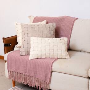 Material: 90% Algodão & 10% Acrílico Cores Predominantes: Rosê Peso: aproximadamente 580g Largura: 180cm Altura: 120cm Origem: brasil