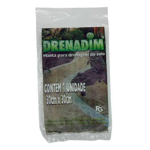 Manta para Drenagem de Solo DRENADIM (30X30) TOP GARDEN Descrição * Cuide do seu jardim de forma prática e eficiente com a Manta Drenadim.* Ideal para condução de floreiras, jardins e áreas verdes. * Esta manta filtra e protege vasos e jardins, evitando que pedras e cascalhos se misturem à terra. * Sua composição permeável permite a passagem de ar, água e nutrientes, mantendo a umidade necessária para o conforto das plantas. * Além disso, impede o crescimento de ervas daninhas, facilitando a manutenção e preservando a beleza do ambiente. * Garanta a qualidade do seu espaço verde com a Manta Drenadim, a solução perfeita para direção e proteção de solos.
