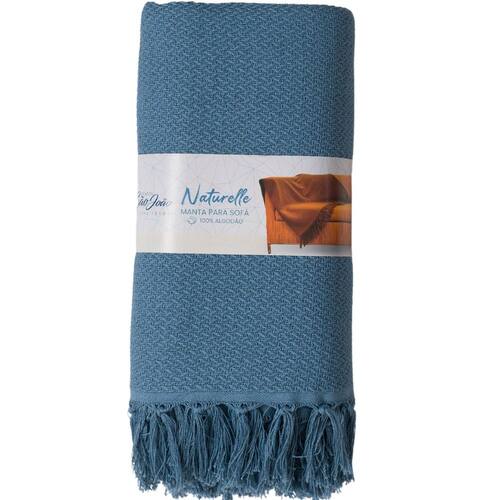 Diferencial: Conforto, sofisticação e versatilidade em uma peça atemporal. Ambiente Principal: Sala de Estar Antialérgico: Não Composição: 100% Algodão Comprimento: 300 cm Cor: Azul Cor do Produto: Azul Dupla Face: Sim Gramatura: 0,517 g/m² Itens Inclusos: 1 Manta Largura: 120 cm Linha ou Coleção: Naturalle Marca: Mantas São João Material Principal: Algodão Origem do Produto: Nacional Peso: 1,3 kg Pode ser Lavado em Máquina de Lavar Roupa: Sim Quantidade de Peças: 01 Peça Recomendações de Uso, Manutenção e Limpeza: "- Lavagem à mão - Não Alvejar - Não utilizar secadora - Secagem na horizontal - Não passar a ferro - Não Lavar a seco" Textura Lã Carneiro: Não Tipo de Tecido: Algodão Marca: Mantas São João