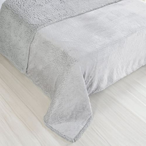 Manta Sherpa Realce Queen Dupla Face 220x240cm Cinza Elefante - Gramatura 360g/m², 100% Poliéster, Dupla Face, Toque Pele de Carneiro, Toque Flannel com Efeito Embossed