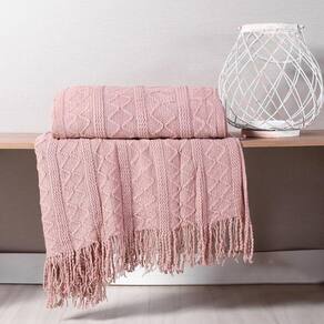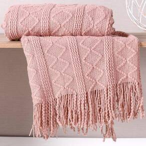 Manta Sofá Tricot Decorativa 127x152 Toque Super Macio Rosa Misty -