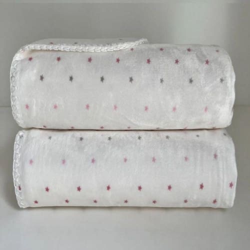 Com generosas medidas de 100 centímetros por 76 centímetros, esta manta é perfeita para o aconchego durante o dia e a noite. Ambos os lados são revestidos em microfibra, apresentando estampas de pequenas estrelas que acrescentam um toque de delicadeza ao ambiente.