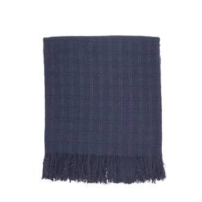 Manta Xale Rubi 1,70m X 1,40m Com Franja Para Sofá Cama 100% Algodão 01 Peça - Azul Marinho