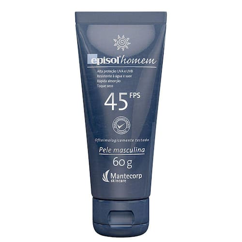 Protetor solar para pele masculina. Mantecorp Episol Homem FPS 45 oferece alta proteção contra os raios UV e controla a oleosidade.