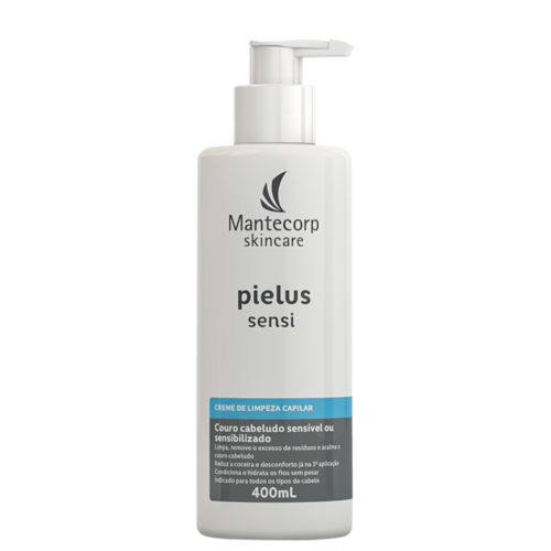 Creme de limpeza capilar para couro cabeludo sensibilizado. Mantecorp Pielus conta com ação higienizadora e calmante.