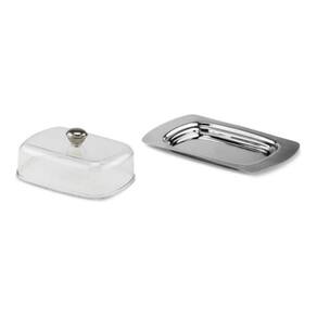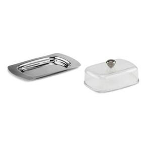 Mantegueira Classic de aço inox 19 cm de comprimento, 12,3 cm de largura e 7 cm de altura. Acompanha tampa de acrílico. Mantegueira ideal para hotéis e pousadas, inox de alta qualidade: não oxida, é resistente a quedas e não solta resíduos nos alimentos.