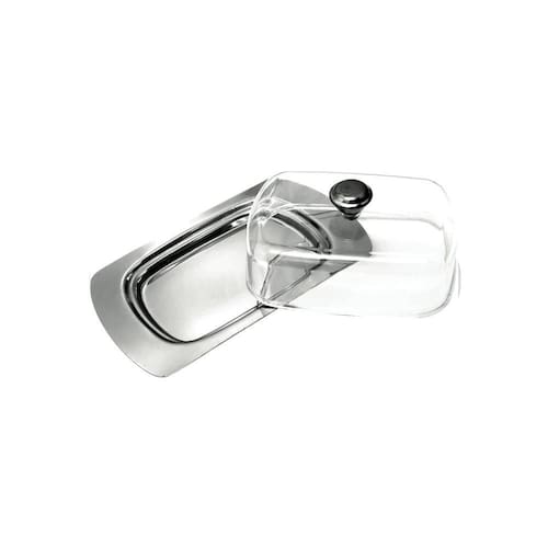 Mantegueira Classic de aço inox 19 cm de comprimento, 12,3 cm de largura e 7 cm de altura. Acompanha tampa de acrílico. Mantegueira ideal para hotéis e pousadas, inox de alta qualidade: não oxida, é resistente a quedas e não solta resíduos nos alimentos.