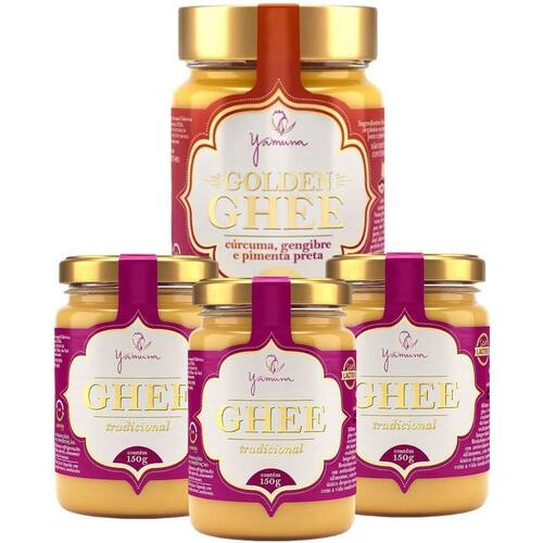 Manteiga Clarificada Ghee Tradicional 150g Kit com 3 + GOLDEN com Cúrcuma, Gengibre e Pimenta Preta 300g