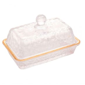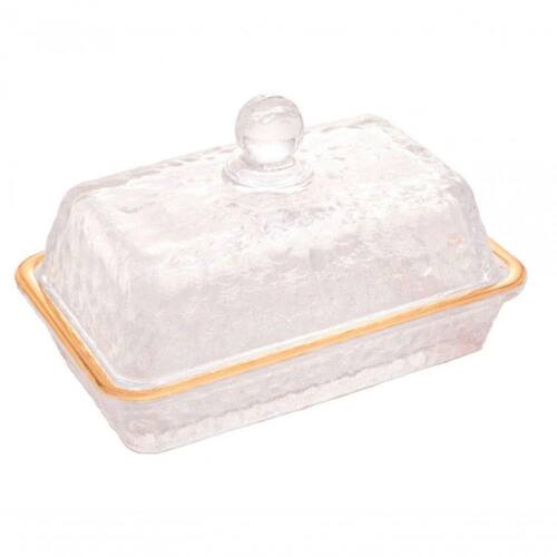 Manteigueira De Cristal Martelado Borda Dourada E Tampa Petra 10cmcom detalhes em dourado nas bordas de toda a peça, dando um efeito delicado e elegante.Efeito martelado em toda a peça. Dando um aspecto diferente e moderno a peça, que vai deixar sua decoração única e inesquecível.Reunir a família em volta de uma bela mesa, decorada com carinho e produtos de qualidade é maravilhoso. Crie recordações em sua mesa