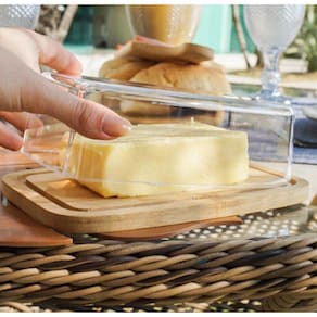 Leve funcionalidade e charme natural para sua cozinha com esta manteigueira elegante. A base em bambu traz um visual moderno e sustentável, sendo resistente e fácil de limpar. A tampa em plástico transparente protege a manteiga contra impurezas e odores, mantendo a cremosidade e o sabor por mais tempo. Ideal para uso diário na mesa ou para armazenar na geladeira com praticidade.