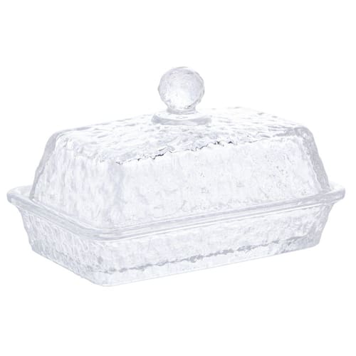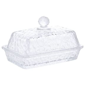 Mantenha o frescor e o leve sabor de sua manteiga protegido com a manteigueira de cristal Martelado Petra, garanta charme e elegância na hora de servir.