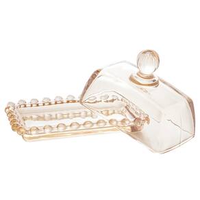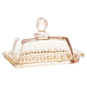 • 01 Manteigueira de Cristal Pearl Âmbar Metalizado 14x9x8cm Wolff