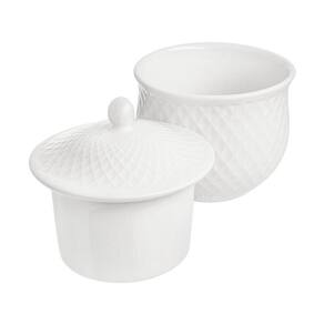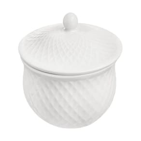 A Manteigueira Francesa Eclat é confeccionada em porcelana com textura delicada, baixa porosidade e alta resistência. Possui design que formam pequenos losangos em alto relevo. A função da manteigueira francesa é manter a temperatura ambiente, o sistema de água cria uma barreira que impede o contato da manteiga com o ar, evitando que o alimento oxide.
