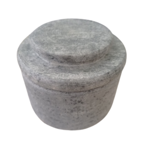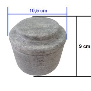O sabor de minas até você... Manteigueira francesa em pedra sabão Ø Longa durabilidadeØ Mantém a temperatura da manteigaØ Conserva o sabor da manteiga mantendo-a sempre cremosaØ Não precisa ir a geladeira MaterialØ Pedra sabão Medias9 cm de diâmetro aproximadamente 10,5 cm de altura aproximadamenteCapacidade de aproximadamente 100 g de manteiga Modo de usar: Coloque água em temperatura ambiente na parte de baixo (aproximadamente 150 ml), coloque manteiga na parte de cima.A água protege a manteiga contra agentes externos conservando-a por muito mais tempo. Observação:* Não precisa ser curada para usar * Fotos ilustrativasPor ser um produto artesanal as peças podem variar, as medidas e pesos são aproximados, porém a qualidade continua a mesma.
