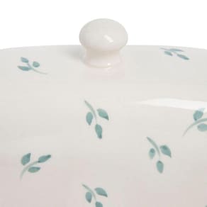 A manteigueira Leaf é confeccionada em cerâmica com estampa de pequenas folhas verdes, oferece delicadeza à mesa-posta. A manteigueira Vista é a forma adequada de armazenar manteigas, pode ser inserida diretamente na geladeira, evitando a exposição do alimento. Na mesa, a manteigueira evita luz, ar e a temperatura ambiente direto no alimento, que podem prejudicá-lo.