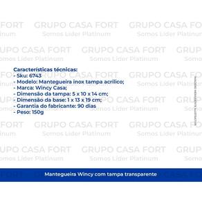 A Manteigueira Aço Inox Retangular Com Tampa De Acrílico Mesa é perfeita para armazenar e servir de forma prática e elegante. Feita em aço inoxidável de alta qualidade, ela não enferruja, é resistente a impactos e não solta resíduos nos alimentos, garantindo a segurança e a durabilidade do produto. Com a marca Wincy Casa, essa manteigueira possui tampa em acrílico transparente, que permite visualizar o conteúdo sem precisar abrir. Além disso, ela é ideal tanto para uso doméstico quanto para hotéis e pousadas. As dimensões da tampa são de 14cm x 10cm x 5cm, enquanto a bandeja possui medidas de 19cm x 13cm x 1cm. Com um peso aproximado de 150g, ela é leve e fácil de manusear. Essa manteigueira é perfeita para manter a fresca e protegida da contaminação externa. Com seu design moderno e sofisticado, ela também é um item decorativo para a sua mesa. Imagens meramente ilustrativas. Pode haver pequenas alterações de tonalidade de cor devido ao lote de fabricação. Garanta já a sua Manteigueira Aço Inox Retangular Com Tampa De Acrílico Mesa e tenha praticidade e estilo na sua cozinha.