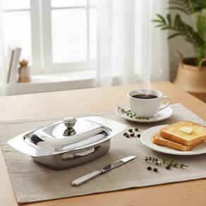 Acabamento Impecável: Fabricada em inox cromado polido, a manteigueira apresenta um brilho sofisticado e resistência excepcional, ideal para o uso diário.