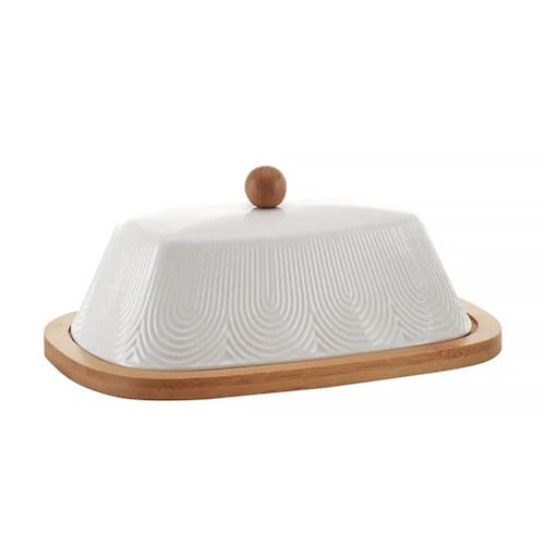 Manteigueira Oásis em Cerâmica e Bambu 21x15x9cm PCLN234 - Hauskraft - Dorémi Casa e Decor