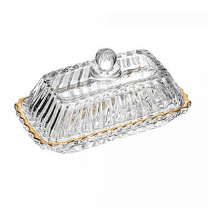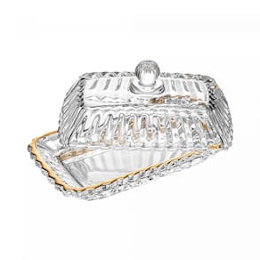 Manteigueira Retangular de Cristal com Tampa e Fio de Ouro Imperatriz 15,5x7,5x8,5cm 20852 - Wolff - Dorémi Casa & Decor