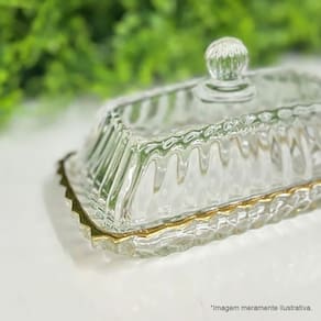 1 Manteigueira Retangular de Cristal com Tampa e Fio de Ouro Imperatriz 15,5x7,5x8,5cm 20852 - Wolff