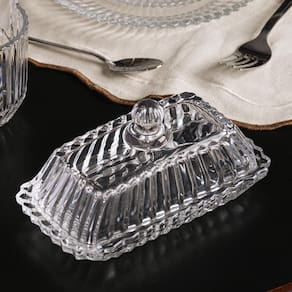 A Manteigueira Retangular de Cristal com Tampa Império da Wolff é a peça ideal para quem busca aliar elegância e funcionalidade na decoração da mesa.