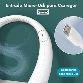 1 Ventilador de Pescoço Portátil 1 Cabo USB para Recarga