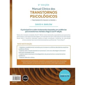 O principal livro sobre tratamentos psicológicos baseados em evidências chega à sua 6ª edição. Este livro apresenta, passo a passo e com exemplos, os diferentes tratamentos psicológicos para transtornos mentais. Sob a organização do dr. David H. Barlow, os autores reúnem informações atuais sobre os transtornos abordados, explicam as bases conceituais e empíricas da intervenção e buscam responder à pergunta mais frequentemente feita por estudantes e profissionais: “Como fazer?”. Além de abordar os transtornos mais comumente observados em adultos, esta edição traz novos capítulos sobre terapia baseada em processos, tratamento transdiagnóstico de pensamentos e comportamentos autolesivos e dor crônica.