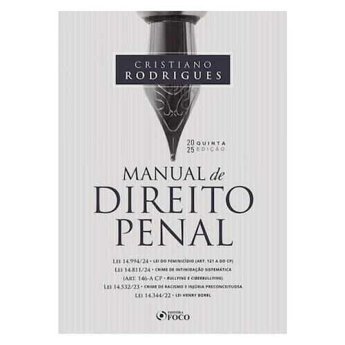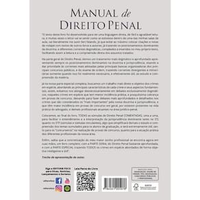 Sobre a obra Manual de Direito Penal - 5ª Ed - 2025 “O texto deste livro foi desenvolvido para ter uma linguagem direta , de fácil e agradável leitura , e muitas vezes o leitor vai se sentir como se estivesse dentro de uma das minhas salas de aula, vai literalmente me ouvir (ler) falando, já que evitei ao máximo colocar citações e notas de rodapé com textos de outros livros e autores, já trazendo os posicionamentos dominantes da doutrina, e diferentes correntes dogmáticas, compilados e inseridos no meu próprio texto, facilitando assim a leitura e a compreensão direta dos assuntos tratados. Na parte geral do Direito Penal, demos um tratamento mais dogmático e aprofundado apresentando sempre os posicionamentos dominantes na doutrina e jurisprudência, visando a dar prioridade às correntes mais adotadas pelas principais bancas organizadoras dos principais concursos públicos, e do exame de ordem, trazendo correntes divergentes e minoritárias somente quando isso foi realmente necessário, e efetivamente útil, ao estudo e compreensão da matéria. Já na nossa parte especial completa , buscamos um trabalho mais direto e objetivo dos crimes em espécie , abordando as principais características de cada crime e seus aspectos fundamentais, assim, evitamos nos alongar desnecessariamente em debates exclusivamente dogmáticos, naqueles crimes em espécie que tem menor incidência prática, e pouquíssima cobrança em provas de concurso, deixando para fazer debates mais aprofundados e detalhados nos crimes que são considerados os “mais importantes” pela nossa doutrina e jurisprudência, e que têm maior incidência em provas de concurso em geral, por estarem presentes na vida prática do advogado, e demais profissionais atuantes na área jurídico-penal. Colocamos, ao final do livro, TODAS as súmulas de Direito Penal COMENTADAS, uma a uma, para facilitar o entendimento e a interpretação da jurisprudência dominante tanto no STJ quanto no STF (súmulas e súmulas vinculantes), algo que simplificará demais o estudo e compreensão dos temas sumulados para os alunos de graduação, e será extremamente útil, tanto para os “concurseiros” na realização de provas de concurso, quanto para a atuação prática dos diferentes profissionais da nossa área. Enfim, saiba que a concretização do meu maior sonho profissional se encontra agora em suas mãos, um livro completo , com a PARTE GERAL do Direito Penal bastante aprofundada , e com a PARTE ESPECIAL trazendo TODOS os crimes em espécie abordados de forma objetiva inteligente e útil ”. Autor Cristiano Rodrigues