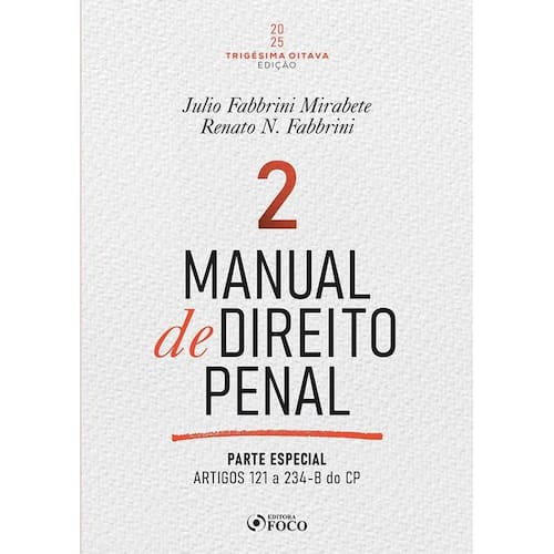 Sobre a obra Manual de Direito Penal - Parte Especial - Arts. 121 a 234 do CP - 38 Ed - 2025 - Volume 2O Manual de Direito Penal, de Julio Fabbrini Mirabete, foi concebido pelo autor como obra destinada aos acadêmicos que pela primeira vez entram em contato com o Direito Penal e aos candidatos a concursos públicos em que essa matéria é obrigatória.Embora se tenha adotado na estrutura do crime a teoria finalista da ação, vencedora na doutrina e inspiradora das legislações modernas, segue a obra uma linha de exegese do direito positivo brasileiro.A 37 edição da Parte Geral, a 38 edição do Volume 2 e a 35 edição do Volume 3, que compõem a Parte Especial, publicadas, agora pela Editora Foco, resultam de uma integral revisão e atualização da obra, encontrando-se em conformidade com o texto vigente do Código Penal, observadas todas as leis que alteraram o Estatuto.Os livros estão atualizados também em face dos textos vigentes da Constituição Federal, da Lei de Execução Penal e do Código de Processo Penal, bem como de outros diplomas que contêm normas de natureza penal ou que geram reflexos sobre a vigência e interpretação de normas penais e processuais penais.As constantes alterações dos estatutos e a profusão de leis extravagantes nos últimos anos têm exigido especial atenção do estudante e do operador do Direito Penal. Com a preocupação de manter o leitor permanentemente atualizado, procedemos ao exame das inovações em suas relações com o Código Penal.Essas últimas ediç&otil