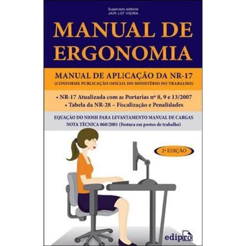 Esta obra traz a NR 17 - legislação que regulamenta a questão ergonômica - além de suas normas de aplicação. Sumário - NR-17 - Ergonomia; 1. Trabalho dos Operadores de Checkout; 2. Trabalho em Teleatendimento/Telemarketing; Tabela da NR-28 - Fiscalização e Penalidades; Tabela de Gradação das Multas; Manual de Aplicação da NR-17 (conforme publicação oficial do Ministério do Trabalho); Apresentação; 1. O processo de Elaboração da NR-17; 2. Comentários sobre a NR-17; 3. Limites de uma Norma; Equação de Niosh para Levantamento Manual de Cargas; Nota Técnica nº 060/2001 - Indicação de Postura a ser Adotada na Concepção de Postos de Trabalho.