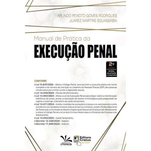 Nesta segunda edição do livro Manual Prático da Execução Penal surgiu da necessidade de ampliar a primeira edição, que se esgotou em pouco tempo. A Editora preferiu manter na sua integra a primeira edição, uma vez que naquela se tratava de temas fundamentais da execução penal, inclusive com as peças práticas e jurisprudências. Neste novo livro o leitor além de contar com todo o material da primeira edição, encontrará o livro atualizado de acordo com o Decreto 12.338 de 23 de dezembro de 2024, que estabeleceu novas regras para o pedido de indulto e de comutação de penas. Manteve-se a estrutura com a explicação teórica, com as peças práticas já adequadas as novas leis, e com uma seleção de julgados sobre execução penal, propiciando aos advogados, estudantes, profissionais do direito um material de estudo adequado para concursos públicos e até para atuação de forma segura na fase de execução penal. A primeira parte do livro trata sobre o direito material, o conflito das leis penais no tempo, a discussão da retroatividade da lei, aplicação em casos concretos e modelos de peças, frequentemente usadas na execução penal. Na segunda parte do livro existe uma análise mais especifica de temas polêmicos do Direito Penal, além de uma análise cuidadosa do Novo Decreto de Indulto, com a doutrina e as peças praticadas para cada caso, e no final do capítulo uma seleção de julgados selecionados para os casos já decididos procurando fazer do livro um material útil, de leitura agradável, sem deixar de ser técnica atualizando com os mais recentes julgados para tornar a obra cada vez mais didática para todos os leitores. Conforme: Lei 15.035/2024 Altera o Código Penal para permitir a consulta pública do nome completo e do número de inscrição no Cadastro de Pessoas Físicas (CPF) das pessoas condenadas por crimes contra a dignidade sexual; Lei 14.994/2024 Pacote Antifeminicídio; Lei 14.843/2024 Altera a Lei de Execução Penal para dispor sobre a monitoração eletrônica do preso,
