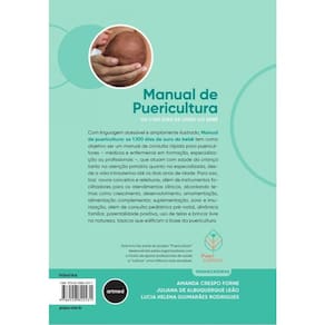 Com linguagem acessível e amplamente ilustrado, Manual de puericultura: os 1.100 dias de ouro do bebê tem como objetivo ser um guia de consulta rápida para puericultores – médicos e enfermeiros em formação, especialização ou profissionais –, que atuam com saúde da criança tanto na atenção primária quanto na especializada, desde a vida intrauterina até os dois anos de idade. Para isso, traz novos conceitos e releituras, além de instrumentos facilitadores para os atendimentos clínicos, abordando temas como crescimento, desenvolvimento, amamentação, alimentação complementar, suplementação, sono e imunização, além de consulta pediátrica pré-natal, dinâmica familiar, parentalidade positiva, uso de telas e brincar livre na natureza, tópicos que edificam a base da puericultura.