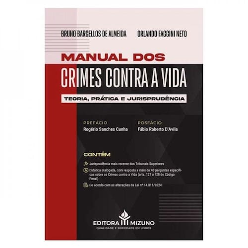 O manual tem como objetivo ofertar aos graduandos em Direito, aos que se preparam para os concursos públicos, bem assim aos operadores que labutam na jurisdição criminal, elementos teóricos, práticos e jurisprudenciais com vistas a compreender as nuances do Direito Penal, particularmente os Crimes contra a Vida (arts. 121 a 128 do Código Penal). Na obra, apresentamos o conteúdo de forma didática, com a metodologia de inserção de perguntas e respostas ao longo do texto, a fim de estabelecer um diálogo com o leitor, facilitando a assimilação da matéria nos pontos essenciais. O livro aborda as recentes mudanças legislativas e as tendências jurisprudenciais, oferecendo ao leitor uma visão atualizada e crítica sobre o tema, sem descuidar do Direito Comparado. Finalizou-se com a apresentação de coletânea selecionada de julgados dos Tribunais Superiores, além de questões objetivas para resolução e treino, acompanhadas do gabarito de respostas, oriundas dos diversos concursos das carreiras jurídicas realizados nos últimos anos. Desejamos, portanto, uma proveitosa leitura. Marca: MIZUNO*