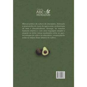 Manual prático da cultura do abacateiro, destinado a graduandos do curso de agronomia, profissionais da área e abacaticultores, abrange, de maneira bastante objetiva e com uma linguagem simples e singular ao leitor, temas atualizados sobre as agrotecnologias de cultivo do abacateiro, contemplando todas as etapas desse sistema de cultivo. Marca: UFPR - UNIVERSIDADE FEDERAL DO PARANA