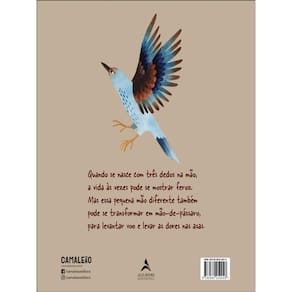 Quando você não se parece exatamente com todo mundo, quando você nasce com três dedos em uma mão, a vida pode ser difícil. Mas também pode ser luminosa e alegre, se nos esforçarmos para reinventá-la todos os dias com imaginação. A mãozinha diferente transforma-se então em mão de pássaro, ergue-se e leva as mágoas nas asas. Mão de pássaro é um livro infantil de grande profundidade, que fala sobre a deficiência sob uma nova perspectiva. É desta forma que Benoît Lemennais conta a história de sua filha, a partir de sua prosa íntima e delicada ilustrada por Marianne Ferrer. Marca: CAMALEAO EDITORA