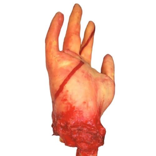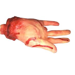 Especificações técnicas do produto: Mão de borracha realística assustador- membro decepado efeito de borracha e látex, não prejudicial a saúde. Utilizado em festas, brincadeiras, eventos, cinema, teatro tv e muito mais. Atenção vendido 1 peça Mão sem um dos dedos.