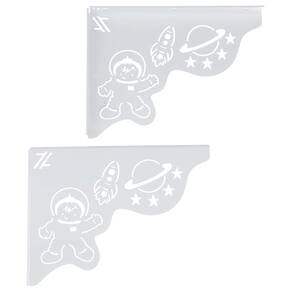 Garantia: 90 dias / Peso: 0,706kg / Cor: Branco / Referência: MENINO02BC Dimensões: 20cm (C) x 2cm (L) x 15cm (A); Recomendados para uso com prateleiras de 20cm a 25cm, de madeira. Para prateleiras de vidro, necessário cuidado para perfuração ou adaptação com ventosa. Capacidade: 20kg; Desenho: nave espacial e astronauta. Espessura do aço: 2mm; Pintura: Epóxi; Cuidados: Limpar apenas com pano macio, não usar abrasivos e não ultrapassar o peso máximo indicado; Conteúdo da embalagem: 1 mão francesa lado direito; 1 mão francesa lado esquerdo; kit de fixação. Material: aço carbono pintado em epóxi, tendo acabamento premium, com alta resistência, de superfície lisa que facilita a limpeza.