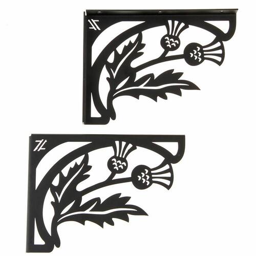 Mão Francesa Ornamentada Preta Aço para Prateleira 20cm Ramos Planta Arabesco Brinco de Princesa Zarg.