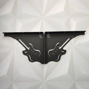 A guitarra é um dos instrumentos que chama atenção de todo amante de música. Para compor uma decoração de música nada melhor que as mãos francesas diferentes, com desenho de guitarra na cor preta que tem pintura epóxi premium, suporta 20kg e é de 2mm de espessura. A mão francesa decorada pode ser utilizada em estúdios de múscia, ambientes comerciais como bares e até em sua sala para mostrar a importância em sua vida. Marca: Zarg