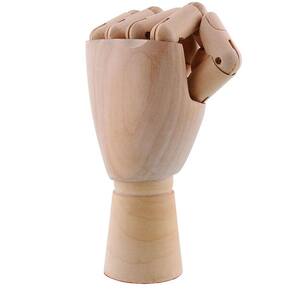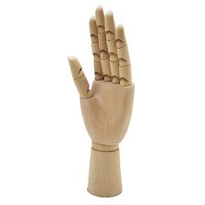 Mão esquerda feito madeira com articulação que fazem o manequim ficar em muitas posições diferentes.