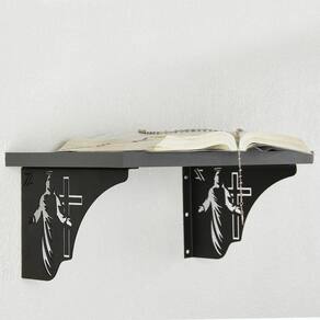Garantia: 90 dias / Peso: 0,684kg / Cor: preto / Referência: CATOLICA03PT Dimensões: 20cm (C) x 2cm (L) x 15cm (A); Recomendados para uso com prateleiras de 20cm a 25cm, de madeira. Para prateleiras de vidro, necessário cuidado para perfuração ou adaptação com ventosa. Capacidade: 20kg; Desenho: Jesus Cristo cruz. Espessura do aço: 2mm; Pintura: Epóxi; Cuidados: Limpar apenas com pano macio, não usar abrasivos e não ultrapassar o peso máximo indicado; Conteúdo da embalagem: 1 mão francesa lado direito; 1 mão francesa lado esquerdo; kit de fixação. Material: aço carbono pintado em epóxi, tendo acabamento premium, com alta resistência, de superfície lisa que facilita a limpeza.