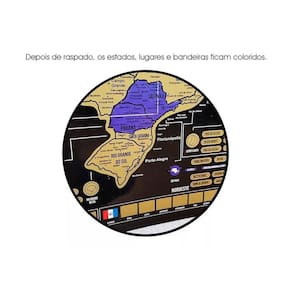 Principais Características: - Tamanho total: 73x50cm - Mapa do Brasil de Raspar Raspadinha com bandeiras - Fabricação própria, produto exclusivo, 100% feito no Brasil - Nomes em português - Acompanha palheta para raspar - Moldura de qualidade, 100% lisa, livre de imperfeições - Acompanha pendurador