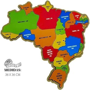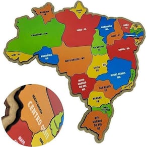 e qual a melhor maneira de aprender brincando. Você vai se surpreender com o quanto o cérebro se desenvolvem nos primeiros anos. Estimular a curiosidade ajuda a criança a querer a aprender mais todos os dias. Descobrir as coisas é uma das melhores partes da brincadeira. Brinquedo lúdico e educativo. Com o quebra cabeça mapa do brasil as crianças aprendem as regiões e os estados do brasil brincando na base de madeira, estão impressas as regiões do brasil e por cima, as 4 regiões brasileiras deverão ser colocados no seu lugar conhecer o brasil nunca foi tão divertido