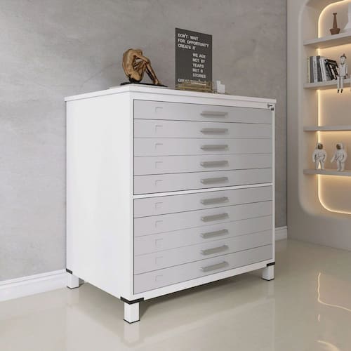 Organize e preserve seus projetos, mapas, plantas e documentos de grande formato com a Mapoteca em Aço com 10 Gavetas da Pandin. Fabricada com estrutura reforçada em aço de alta qualidade, esta mapoteca garante durabilidade, segurança e um excelente aproveitamento de espaço.