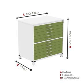 Possui 10 gavetas amplas com corrediças que facilitam a abertura, mesmo com carga total.