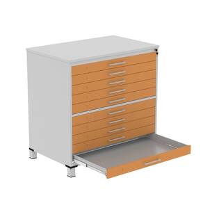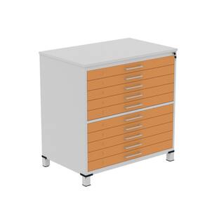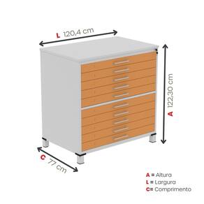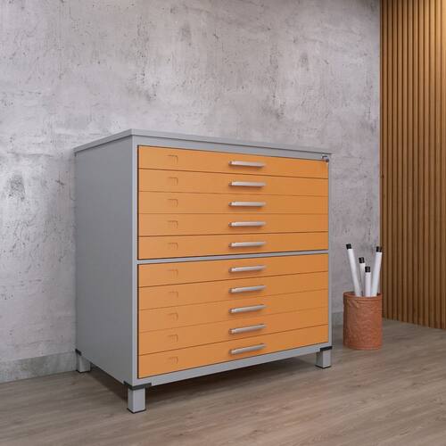 Mapoteca 10 Gavetas Map10 120,4cm X 122,3cm Aço Cinza/Laranja