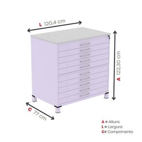 Design funcional e acabamento de alta qualidade, padrão Pandin. Acabamento da Gaveta: Pintura Ambiente Principal: Escritório Cor: Lilas/Cinza Cor do Produto: Lilás/Cinza Cor Flex: Não Cor Interna: Lilás/Cinza Escala de Brilho: Semi-Fosco Escala de Brilho da Gaveta: Semi-Fosco Fechadura de Múltiplas Gavetas: Sim Gaveta com Chave: 01 Itens Inclusos: 1 Mapoteca Linha ou Coleção: Aço Manual de Montagem e Instalação: https://product-hub-prd.madeiramadeira.com.br/851187153/documents/4cbbeeb7-1e66-409a-b422-cdf002a9bb413120165387017544907395867.pdf Marca: Pandin Móveis Material da Gaveta: Aço Material do Gaveteiro: Aço Material do Puxador da Gaveta: PVC Material Principal: Aço Montagem Flex: Não Necessita Montagem: Não Origem do Produto: Nacional Peso: 120 kg Peso Máximo por Gaveta: 35 kg Possui Acabamento na Parte de Trás: Não Possui Gaveta para Pasta Suspensa: Não Possui Portas: Não Possui Prateleiras: Não Recomendações de Uso, Manutenção e Limpeza: Utilizar um pano levemente umedecido com água, para finalizar utilizar um pano seco. Sapatas Niveladoras: Sim Suporta Até (kg): 35 kg Tipo de Corrediça da Gaveta: Metálica Telescópica Tipo de Gaveteiro: De Chão Tipo de Puxador da Gaveta: Externo Marca: Não Informado