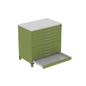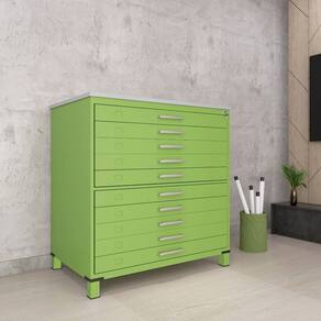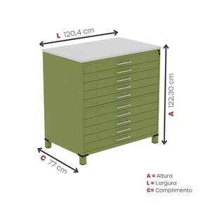 Mapoteca 10 Gavetas Map10 120,4cm X 122,3cm Aço Verde Miró/Cinza