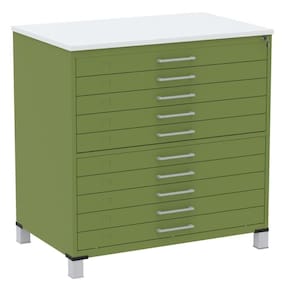Mapoteca 10 Gavetas Pandin 120 Cm (larg) Inmetro Tampo Mdp Branco Estrutura E Gavetas Em Aço Verde